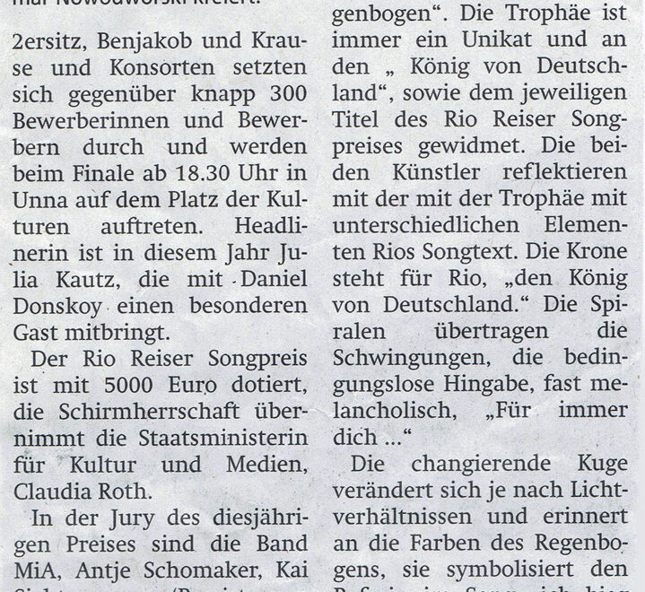 Juli 27, 20240 Die Kreation zum 5. Rio Reiser Songpreis von arthaus:nowodworskiTitel: „Ich bieg dir’n Regenbogen“